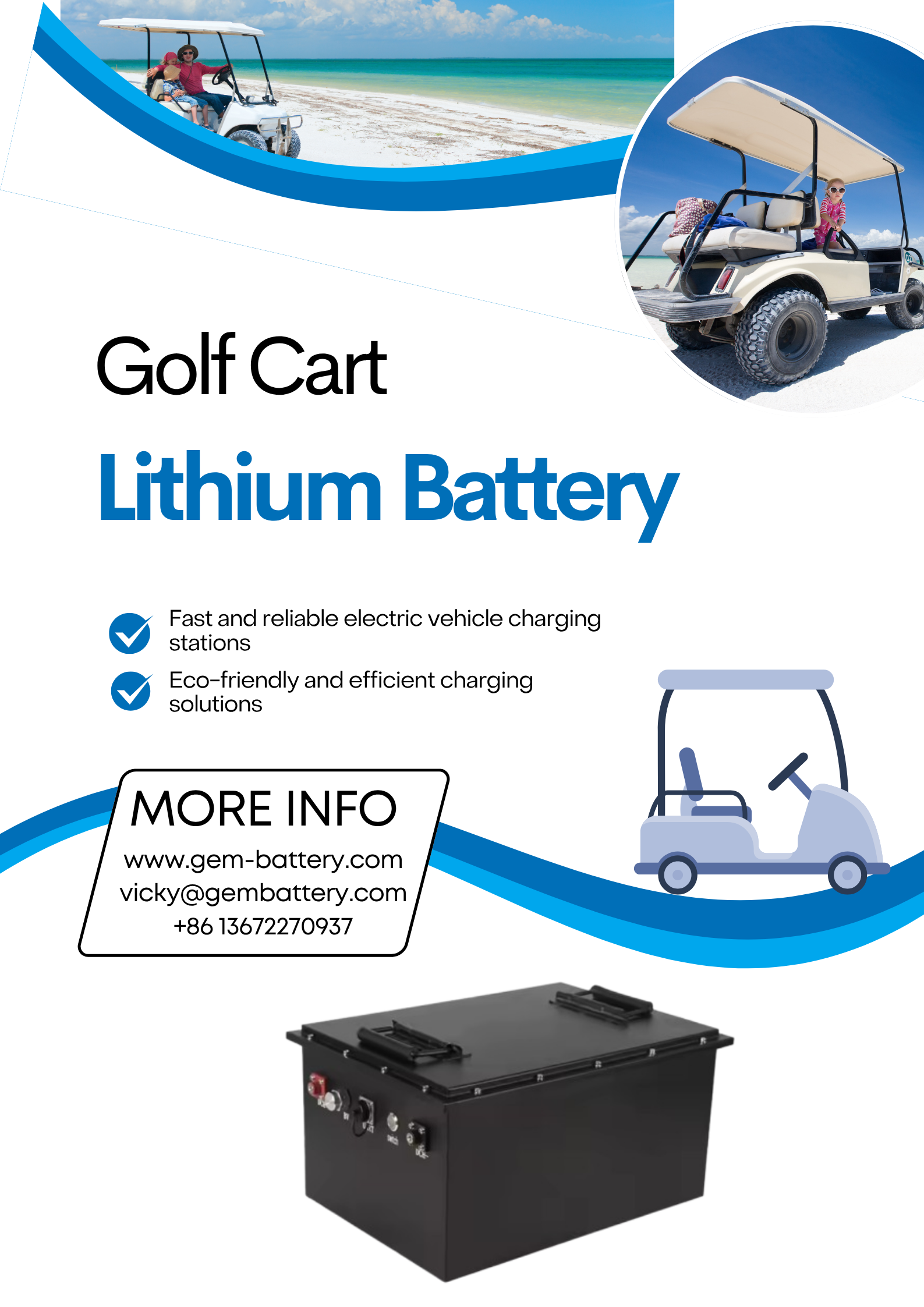 Engineered for superior golf cart performance, GEMFG's Lithium Battery delivers consistent power through 18+ holes on a single charge. The lightweight design reduces vehicle strain while improving acceleration and hill-climbing capability. With advanced thermal management and robust construction, this golf cart battery maintains optimal performance in various weather conditions. Its maintenance-free operation and long service life provide outstanding value for both personal and commercial golf cart applications.